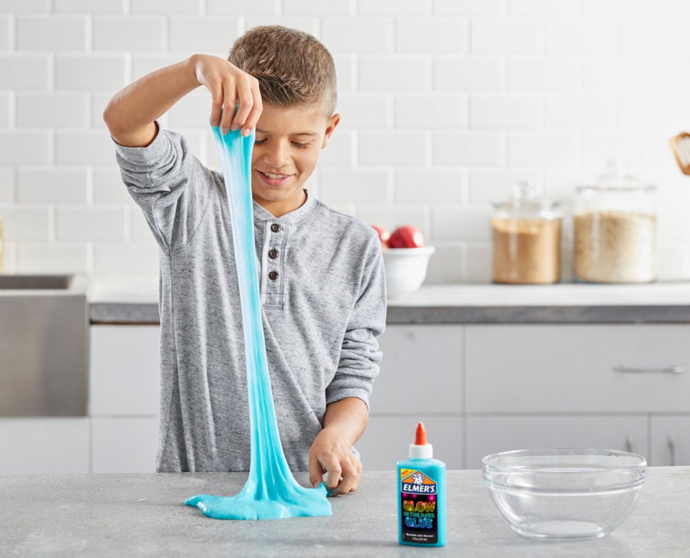 - Pour the entire contents of the 147.9 ml Elmer’s Glow-in-the-Dark Glue into a bowl.