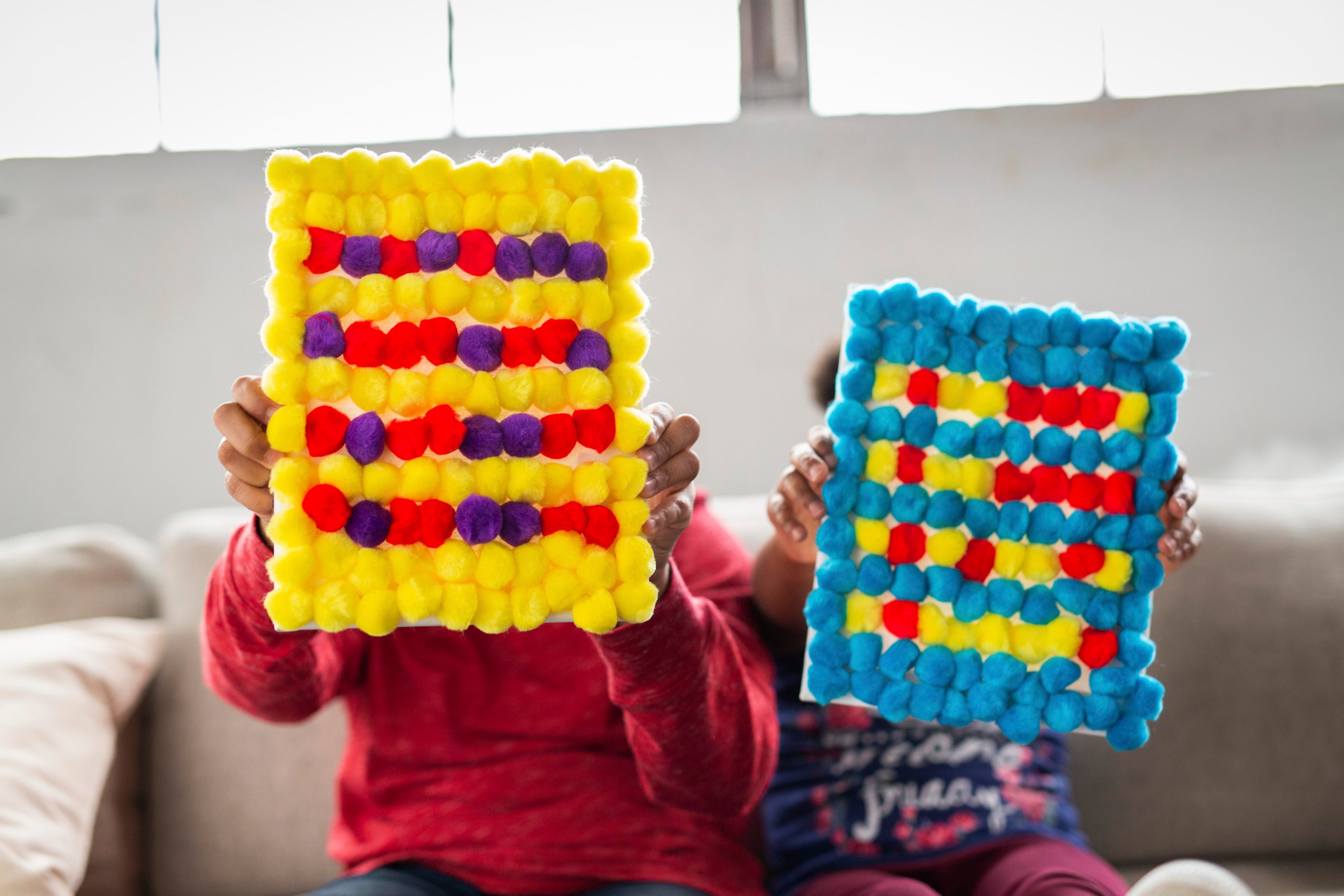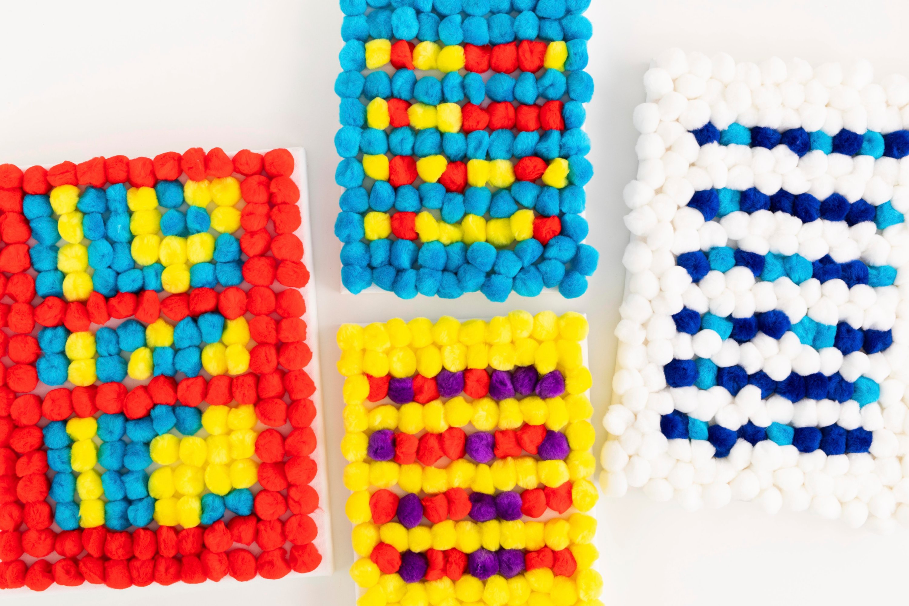 - Want to try more? Try using your pom-pom balls to write an entire sentence or poem in code art. Then, give your parents or a friend your code art and see if they can figure out what you are saying.
